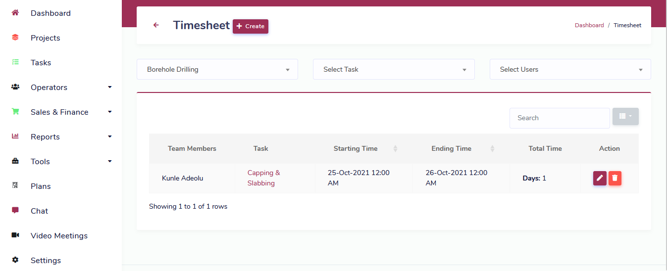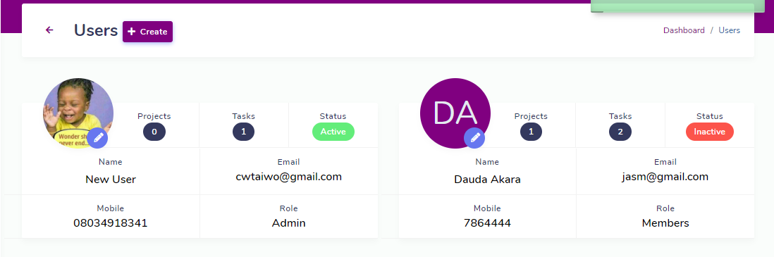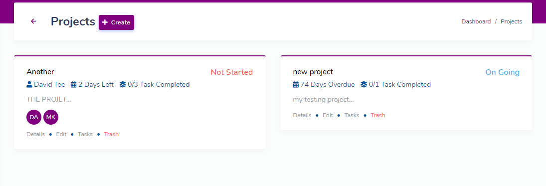 Note, only the admin can create project/s and tasks to be accomplished. Admin also assign to each member such task as to be performed by the user.