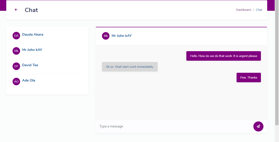 Chat allows communication among team members. And this is documented for future reference. You don’t have to leave the application for any discussion.